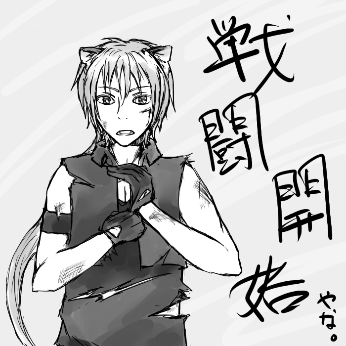 それでやっぱり他所様のキャラ描くと緊張するなーと思いながら、私にしてはらくがきではなくなってきてたわ。結構頑張った。でも耳とか牙とか尻尾(髪のほう)とか、って、いいよねロマンだよね。本当にニヤニヤしながら尻尾(髪のほう)描いたよ!だって色々ツボだもの!!
