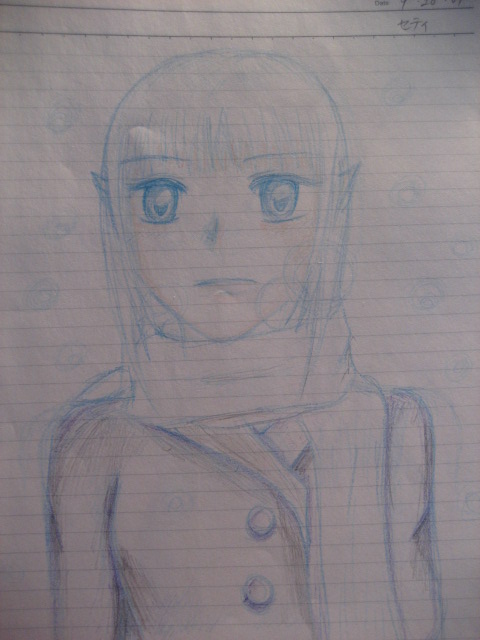 お絵かきの練習に、フレンドさん色鉛筆一発書きってのをやってみました。